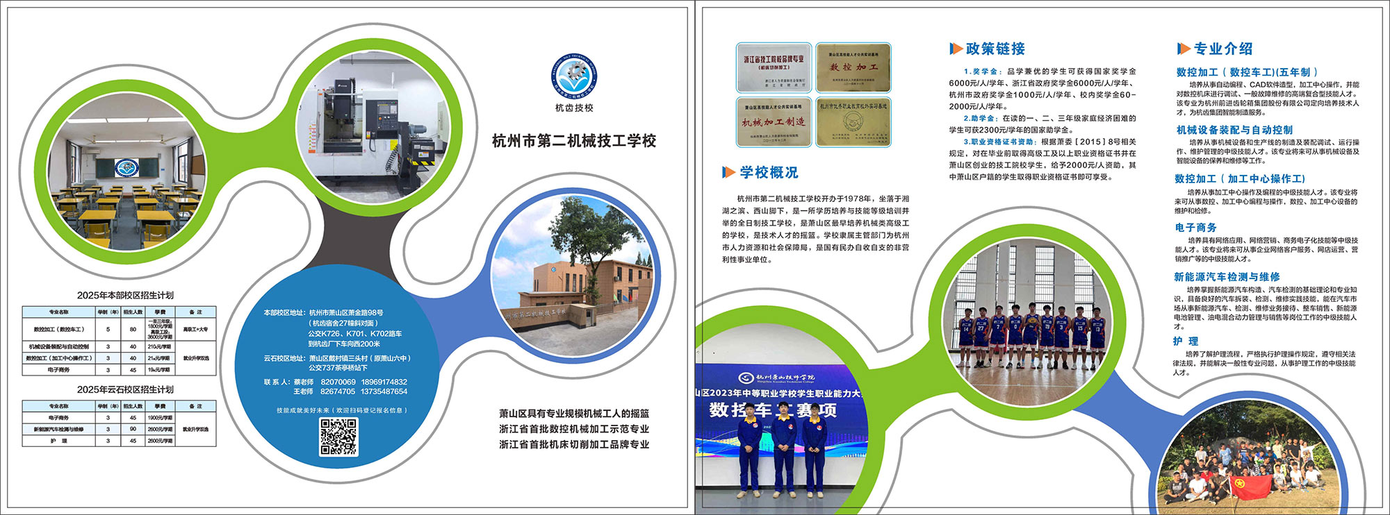 学校以提高质量为重点,着力培养学生普通车床、数控车床、钳工等基本技能,同时开发学生一专多能、适应企业需要的多工种岗位。学校拥有年产值达亿元的实训场所,并与中国传动装置研发制造上市公司——第一批制造业单项冠军企业杭齿集团建立长期、稳定、有效的校企合作关系。学校与杭齿集团合作共建智能制造产教融合基地,推进传统制造业转型升级,以培育和弘扬精益求精的工匠精神,引领学生专业发展。学校切实贯彻“双证书”(学历证书、职业资格证书)制度,开设大专班教学点。毕业生职业资格证书获证率达100%。2020年5月学校整体搬迁至萧金路98号(原校址向东500米左右)新校区,全新的教学设施极大的提升了学校的办学条件。